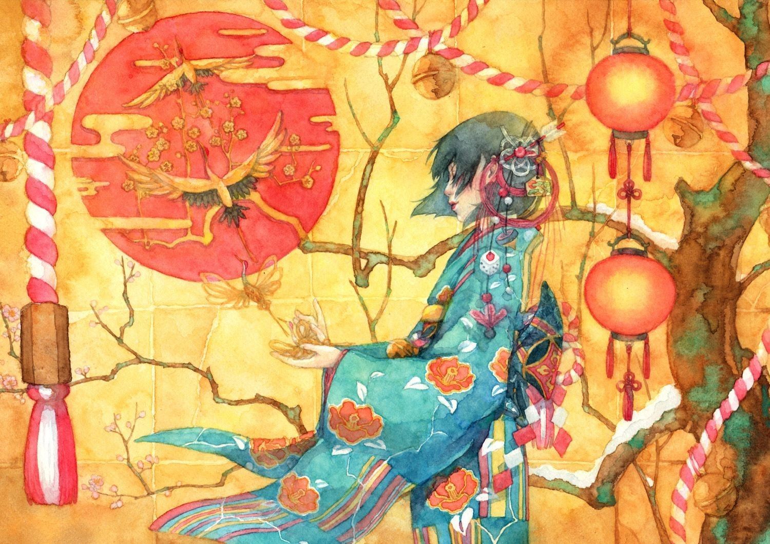 illustration image manga divers vie article belle belle image dessin internet aquarelle watercolor kimono traditionnel japonais illustration hatsune miku